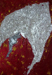 2010papier geplakt op doek en daaroverheen met zilververf om de beweging van de vleugels van de engel , die Maria komt vertellen dat Jezus geboren zal gaan worden, weer te geven.