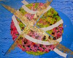 2009tweeluik met het thema 'solidariteit', gemaakt in gemengde techniek op doek. Erbij wordt op 4 doekjes van 50 x 70 cm beschreven hoe ik tot dit werk ben gekomen, waarom en met welke technieken, een zgn idee-ontwikkeling