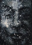 2012serie van 6 koppen op handgeschept papier op doek, in pastel, inkt en parelmoerkleurige acryl, 3 x 18x 24 cm en 3 x 20x20cm, met 'rafelige' rand