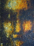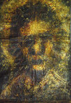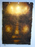 2005een 'kop', waarbij het lijkt of er een stralenkrans omheen zit. als je goed kijkt zie je goudpapier, gemengd met inkt en verf.