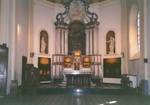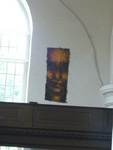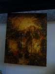 2004deze foto geeft een overzich van een expositie in een kapel in Zoutleeuw, tijdens een kunstroute: links 235x145, papier op doek midden 3x ca. 80x110, op ijzer/hout rechts 200x200, papier op doek