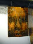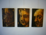 2006drie paneeltjes, gemaakt van houten latjes, waarvan de grootste ca. 40 x 50 cm is, beschilderd met inkt en gouden acrylverf, bedoeld als drieluik, maar kunnen ook los gebruikt worden. foto laat de grootste zien.